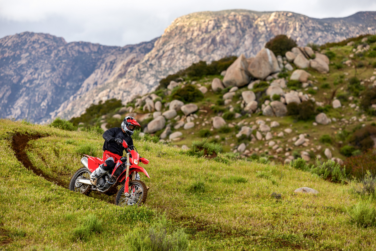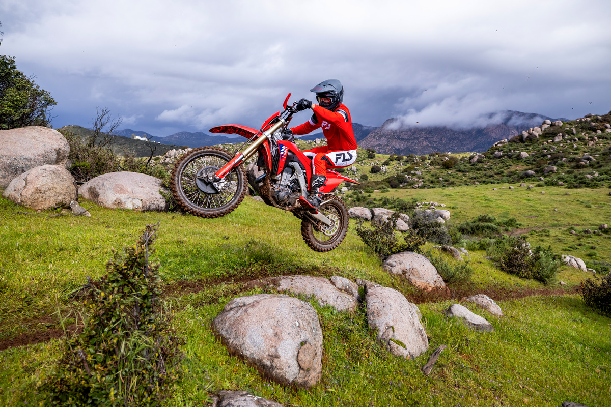 Having six speeds in the CRF450X’s transmission compared to an MX bike’s typical five gives you more choice, and makes this versatile bike even more versatile. You have a gear for everything from east-coast rock crawling to wide-open Baja blasts.