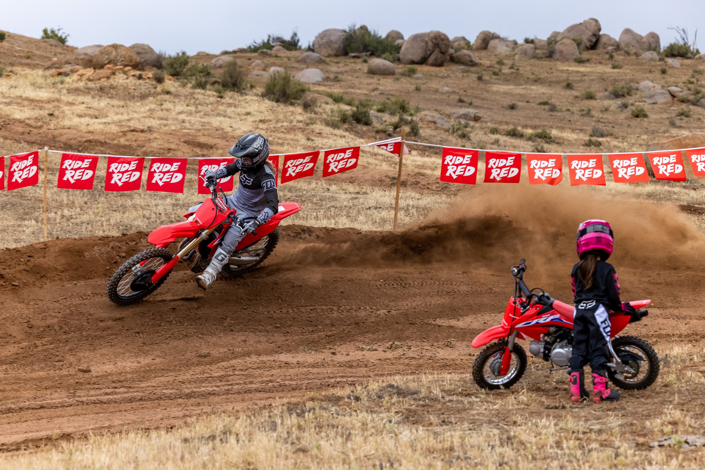 Little legs can reach the ground thanks to the CRF50F’s super-low 548mm seat-height, allowing even the smallest of riders to discover the thrills of off-road riding.