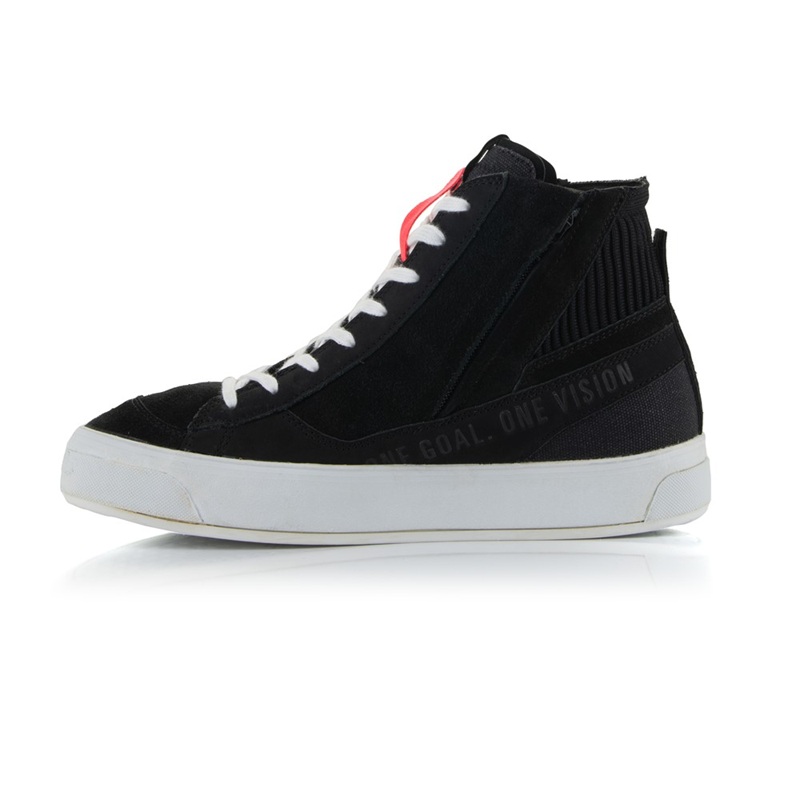 The Stella Stated Podium Shoes from Alpinestars are a mash up of high-top skate shoe styling and modern safety features you want when riding. The nubuck, canvas and split suede main upper feels as good as it looks and provides abrasion-resistance. Integrated dual density ankle discs provide impact protection and external multi-layer padding provides additional coverage in case of a spill.
