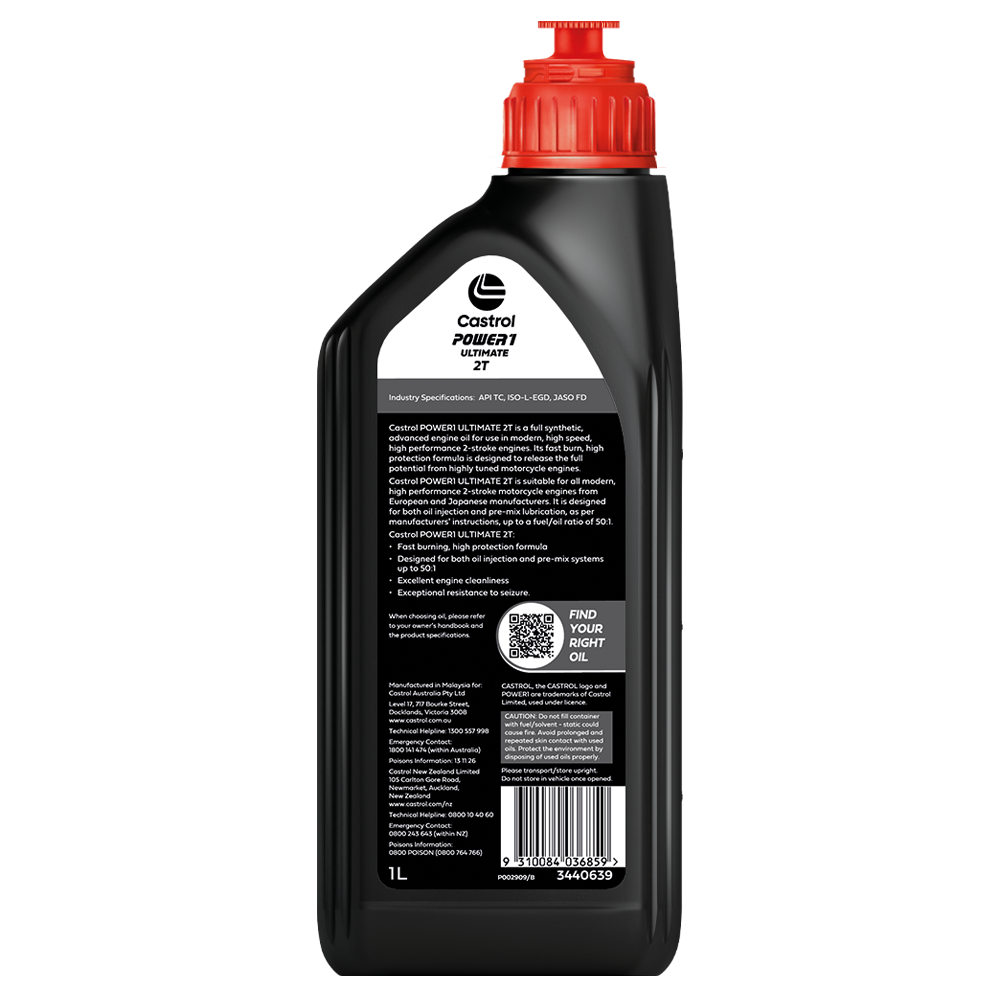 Product change – Please note from July 2025 Castrol will be replacing this product with Castrol POWER1 Ultimate 2T, you can still expect the same specifications, quality and technology from this new product only the name and packaging will change.