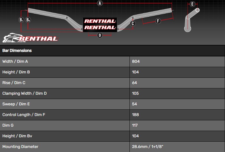 The championship proven Renthal® Fatbar® continues to set the industry standard in an unbraced tapered mx handlebar.
